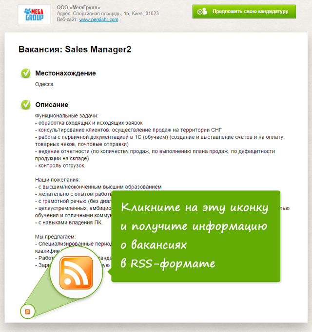 Пользователи «Персии» активно используют публичную страницу компании для распространения информации об открытых вакансиях. Теперь рекрутер может ретранслировать эту информацию на другие интернет-ресурсы с помощью RSS.