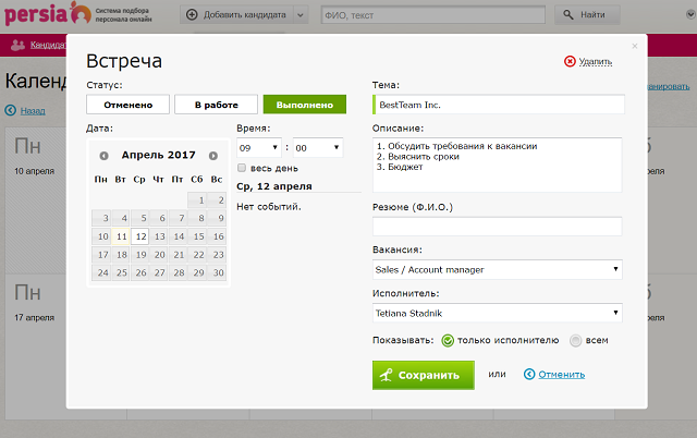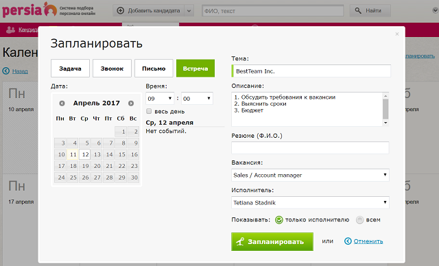Планировщик задач в «Персии» — выбор эффективного рекрутера!